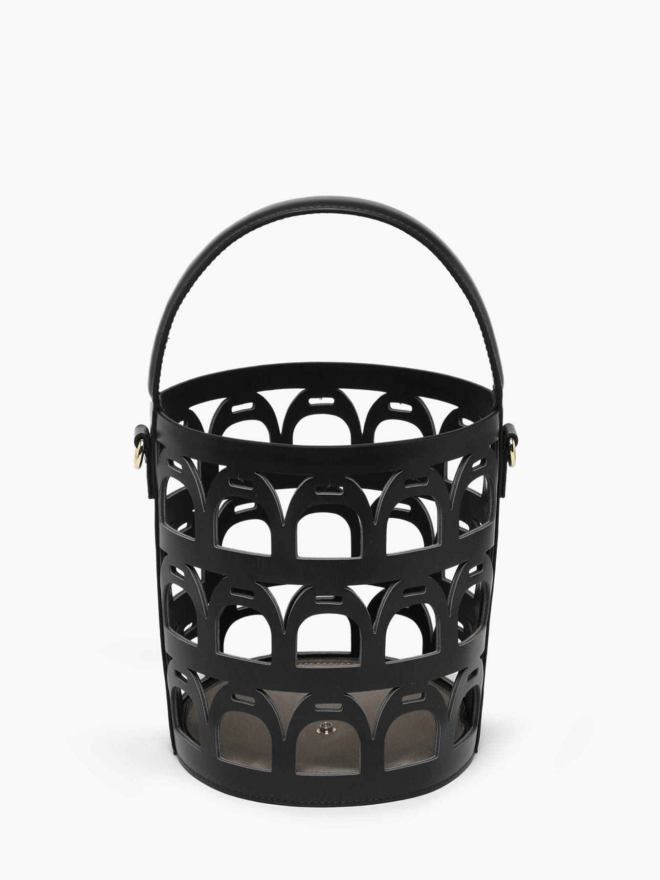The EPONA crossbody bag by ETRIER stands out with its structured, contemporary design. Crafted from leather, this bucket-style model features a rigid geometric silhouette and subtly integrated stirrups—a discreet yet iconic signature of the brand. It opens with a fabric drawstring pouch, which is secured to the bottom of the bag with a snap button for added stability. Designed to suit every style preference, it can be carried by hand with its top handle or worn crossbody thanks to the adjustable and removable strap. A modern and refined piece, perfect for adding structure and character to any outfit.